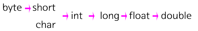 자동 형변환은 담을 수 있는 데이터형이 담을 데이터형보다 큰 경우 Java에서 자동적으로 데이터형을 변경해주는 것을 말한다. 즉, Java에서는 표현범위가 좁은 데이터 타입에서 표현범위가 넓은 데이터 타입으로의 변환은 자동적으로 변환된다.